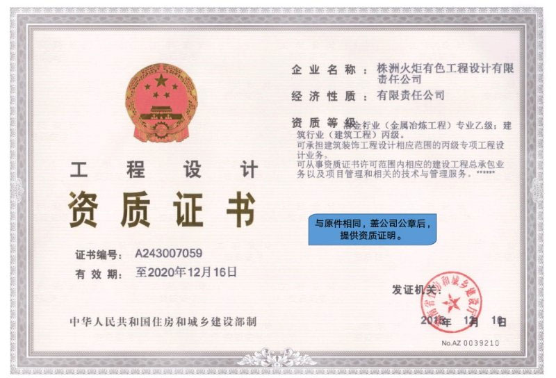 公司是中国有色金属建设协会理事单位,株洲市勘察设计协会副理事长单位。公司现有教授级高 级工程师2人,高 级工程师23人,工程师18人,国 家一、二级注册建筑师、结构师、注册冶金师、注册电气师、注册给排水师、注册造价师等共 16 人,及一批年轻的工程技术人员,专业配置齐全。有一批从事有色冶炼、工民建、电气、机械设备、自动化控制、采暖通风、给排水等配套专业设计工作多年的设计骨干,具有较高的技术水平和实力,能够承担设计证书所规定范围的工程项目设计。设计公司是具有较先进的设计技术装备,已建立了计算机局域网,实现了计算机辅助设计系统(CAD),计算机出图率已达99.99%,具有较强的技术优势。近二十年来,我公司主要承担集团公司内技术改造和民用建筑工程设计,参与了株洲冶炼集团全部技术改造和扩建工程的研究和设计工作,掌握了铅、锌、铜及稀贵金属冶炼和民用建筑工程的朂新技术,新工艺、新设备,对工业厂房的设计积累了丰富的经验。完成了株冶湿法炼锌老系统改扩建(从年产10万吨扩产至60万吨);与北京有色冶金设计研究总院合作,完成了株冶97年建二系统十万吨电锌工程的设计和株冶新建的具有世界更先进水平的常压富氧直接浸出十万吨电锌工程的设计。