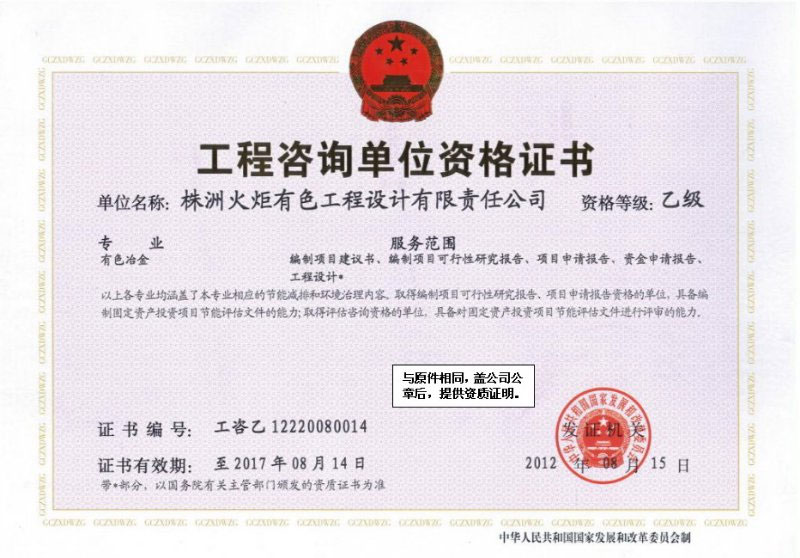 株洲火炬有色工程设计有限责任公司由株洲冶炼集团下的设计院2005年改制而成, 92年正式独立核算,当时名称为株洲金马工程设计公司,2001年更名为株洲冶炼厂有色冶金设计研究院,2005年更名为株洲火炬有色工程设计有限责任公司。株洲冶炼集团为国内更大的铅、锌冶炼生产企业,国 家一级企业,是上市公司,2010年销售收入126亿元,拥有锌、铅、铜等60万吨生产能力,并综合回收金、银、铜、镉、铟、铋、硫等稀有金属和有价元素。其冶炼技术和装备属国内领 先水平,其中很大一部分达到国 际先进水平,铅、锌等产品已在伦敦金属交易所注册,产品出口,远销世界各地。株洲火炬有色工程设计有限责任公司现有冶金行业(金属冶炼工程)设计乙级和建筑工程设计丙级证书,以有色金属冶炼、民用建筑工程设计、技术咨询、服务、开发;有色金属及矿产品贸易,为独立的法人经济实体。
